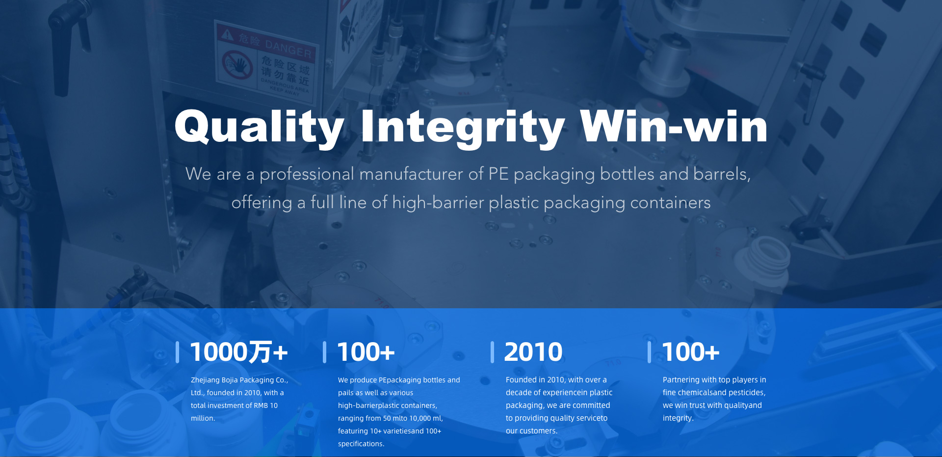 Zhejiang Bojia Packaging Co., Ltd.Company ProfileZhejiang Bojia Packaging Co., Ltd. was established in 2010 with a total investment of 10 million RMB. Located in the scenic city of Hangzhou, the company is a leading production base and raw material supplier for plastic packaging bottles in China.Since its inception, Bojia Packaging has established long-term and stable cooperative relationships wit...